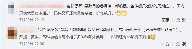 一柜難求,主要受出貨量大、國外港口受疫情影響,周轉(zhuǎn)率低,于是船公司又來作妖了,8月份開始,每個柜又要增加幾千美金的“附加費”讓外貿(mào)企業(yè)雪上加霜。